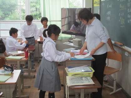 1組ではえいごの授業が終わったところですね。