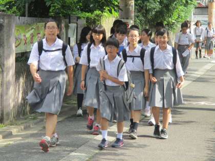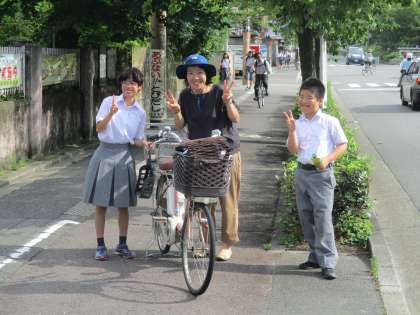それでも生徒たちは今日も元気に登校してきました。いつもの高校生たちも元気です。中学生が「行ってらっしゃーい!」と声を掛けると、笑顔で「行ってきまーす!」と言って通り過ぎていきます。朝の清々しいワンシーンです。