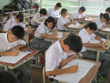 3年は、この時間保健体育でしたが、2年は英語のテストでした。