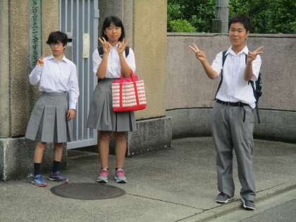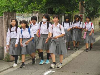 ノートを片手に登校する生徒もいます。今日も頑張ってほしいです。