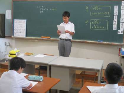 今日も週末の科学センター学習や合同球技大会のことをまとめて発表していました。