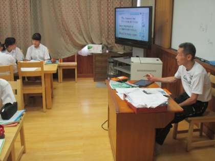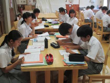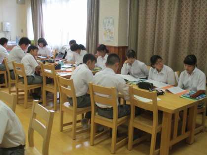 英語の先生が先日の教職員バレーボールで負傷し、移動が難しいのでイキイキ交流ルームでの学習になっています。