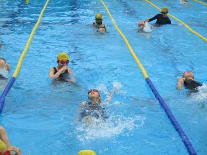 今日は背泳ぎの練習が始まりました。
