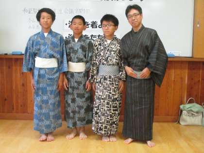 4時間目は5組が浴衣の着方を学びました。