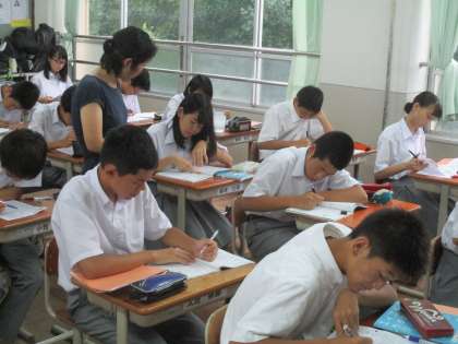 英語の時間にはALTのジョシュ先生が一人ずつ聞き取りをしていました。残念ながら写真を撮り損ねました。