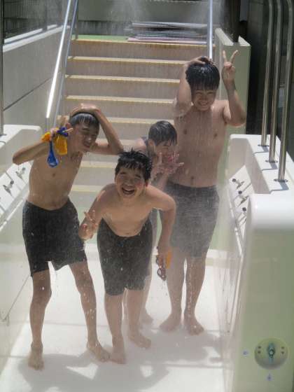 6組の写真はプールの学習を終えてシャワーを浴びている場面です。