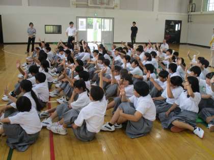 暑い体育館での学習でしたが、皆さん真剣に受講できました。