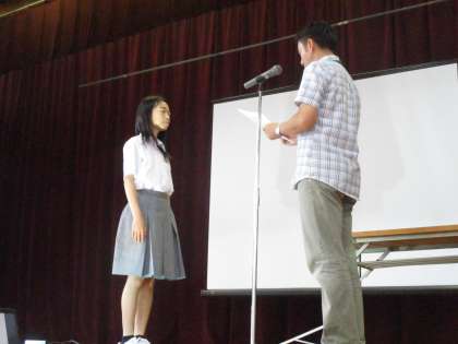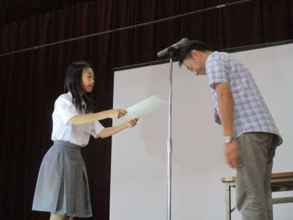 地生連の会長(本校のPTA会長)が来て頂いていたので直接授与して頂きました。