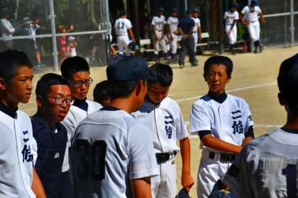 野球部はベスト8をかけての戦いです。勧修寺グランドで東山泉中との対戦です。