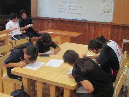5時前、早めに練習を終えた女子バスケットボール部はミーティングをしています。