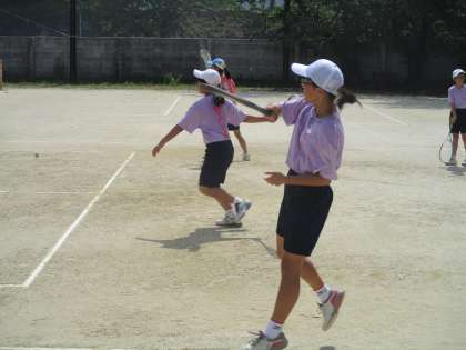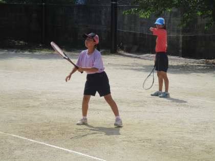 テニス部には高校生と3年生が来てくれています。水分摂取を怠らず、体調管理に努めて頑張ってください。