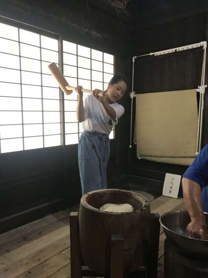 夏場のお餅つきとは珍しいですね。でも、建物の中はそんなに暑くなかったそうです。