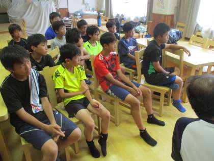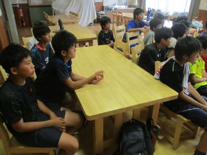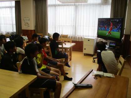 グランドでの練習を終えた後でしょうか、みんなで先日のワールドカップの試合、日本対ベルギー戦を観ていました。