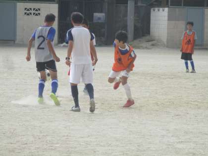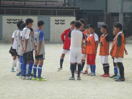 この時間になると、少しは熱さがましです。でも、雨が降っていないので砂埃が経って大変です。みんな、まじめに一生懸命取り組んでいます。サッカー部も楽しみです。