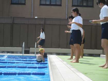 3〜5組は体育。プールで水泳の学習です。今は専らタイムを計っています。