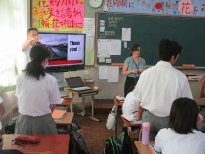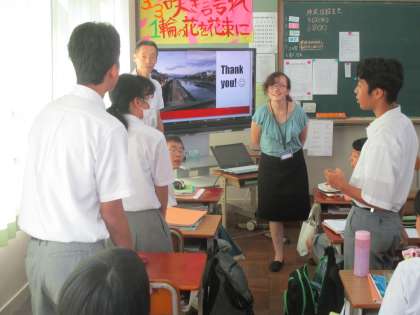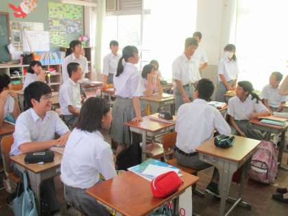 3組は英語。新しいALTの初めての授業です。ALTに対して、色々と英語で質問をしていました。
