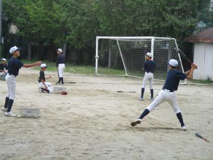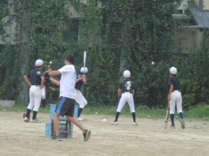 グランドでは野球部が練習を始めました。