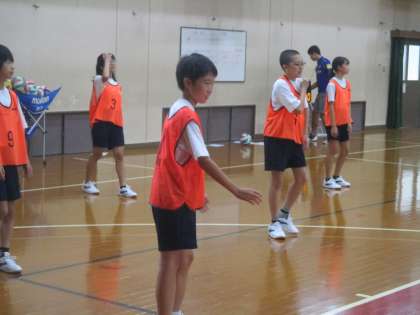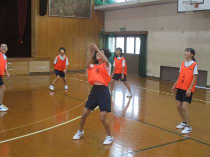 1年は体育です。講堂でバレーボール、体育館ではマット運動が行われていました。