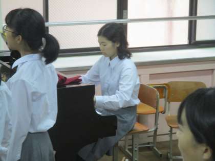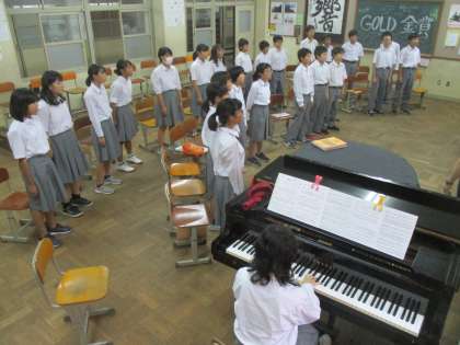 第1音楽室で1−1が合唱練習をしていました。
