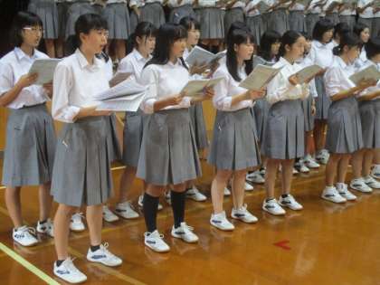 1・2年生は、この写真からもわかる整列の様子、歌う姿勢などを学んでほしいと思います。これこそが二条中学校の3年生の姿です。