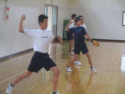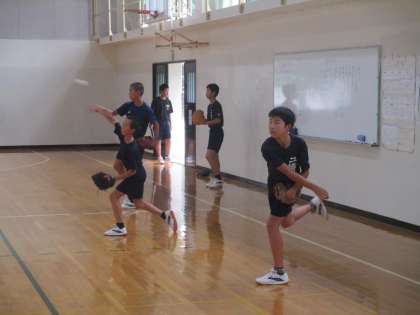都合よく体育館が空いていました。そこで、今日は体育館での練習でした。