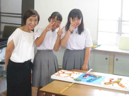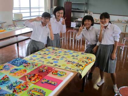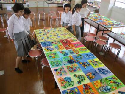 クラスの代表生徒が、別室で自クラスの分を合わせて学級作品に仕上げていました。