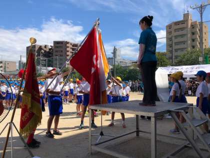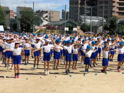二条城北小学校は、開会を午後からにして、各学年の単体競技や演技のみを行いました。