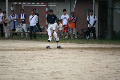 ピッチャーの野原君にフェンス越えの2べースが出ました。2回以降1−0で膠着気味だった試合が大きく動き出しました。この回2点を加えて3−0になりました。