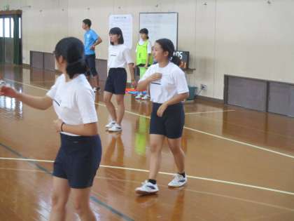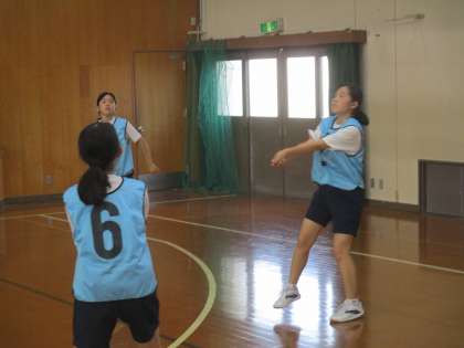 男子はハンドボール、女子はバレーボールに取り組みました。