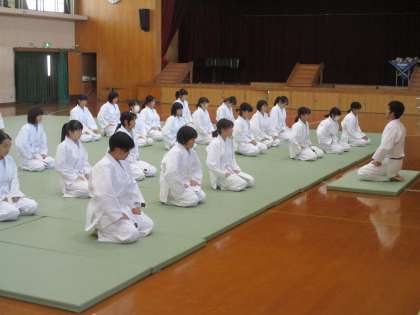 学習の終わりには黙想で心を落ち着かせ、きちんと礼をします。