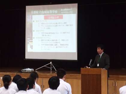 公立高校を代表して京都府立山城高校から、そして、私立高校を代表して京都学園高校から先生をお招きして、お話を聴きました。