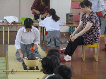 中学生がお点前を見せます。