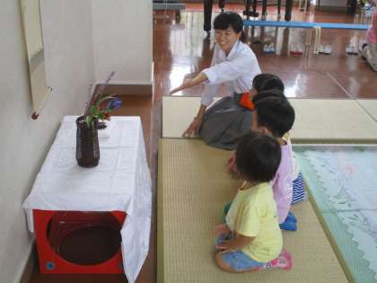 同じく、お軸の解説を聴き、お菓子を頂き、お点前を観ます。