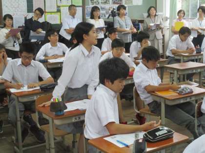さて昨日、本校の若手教師が北・上京支部の道徳の研究授業を行いました。彼女に決まったのが6月。それから4カ月にわたって指導案を練り、繰り返し作り直して本番に臨みました。自校の教員を褒めて恐縮ですが、大変良い授業だったと思います。よい授業だったと評価する理由を2つあげます。1つめが指導方法と発問の工夫です。これは授業者が計画を立てる際の肝になる部分です。どのように展開するのか、生徒にどんな活動をさせるのかです。発問については特に吟味が必要です。ショウモナイ発問をすると、生徒は一気に学習意欲をなくしてしまうものです。2つめは生徒がみな非常に深く考えたところです。1つめが授業者のよかった点で2つめは学習者のよかった部分です。いつも言っていることですが、よい授業は、一生懸命に伝えようとする授業者と一生懸命に学ぼうとする学習者の間に生まれます。将に昨日の授業がそうでした。生徒たちは、次々とよく考えられた深い意見を述べました。誰かが深いよい意見を述べると、『ようし、僕も私も…』と更に気の利いた考えを発表しました。最高のムードに包まれたよい展開となりました。失敗した道徳の授業ではこの反対が起こります。生徒が考えることから逃げ、「分からん…」「別に…」などの無意味な言葉を言いだします。こうなると、授業がドンドンつまらなくなっていってしまいます。