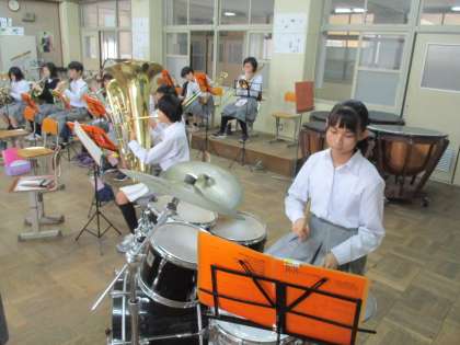 吹奏楽部も頑張っています。この時はまだウォーミングアップとチューニングですかね。