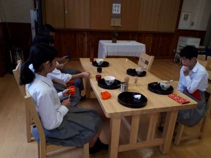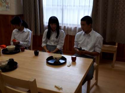 今月は3年生が4人来てくれました。お茶がはじめての人も割稽古終わり盆略点前が一通りできました。帛紗もとても上手に捌けるようになり,今後が楽しみです。卒業前のお茶会で活躍してくれることと思っています。