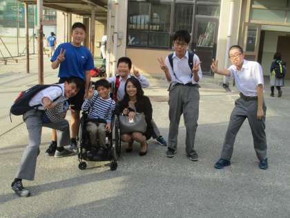 授業の参観と校長・教頭との話を終え、部活動の様子を観るべく中庭に居ると彼を知っている1・2年生が集まってきました。