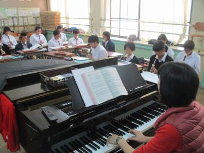2年生は体育、音楽の授業でリコーダーを演奏している要るのは1年生です。