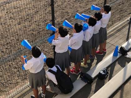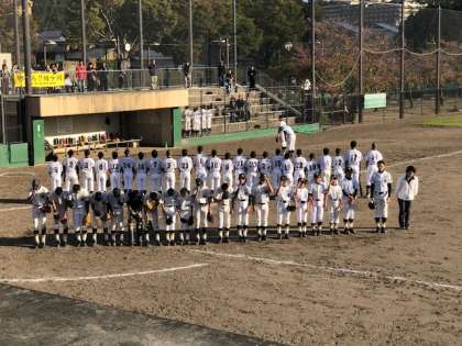 チームが守備に就く際、いつもは誰かが歌いだす二条中の応援歌。今日はバレー部の女子たちが歌ってくれました。