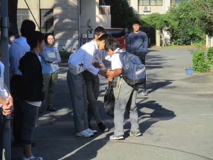 登校する生徒の方が照れくさそうにしているのが印象的でした。