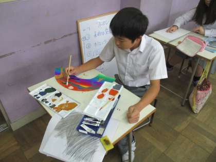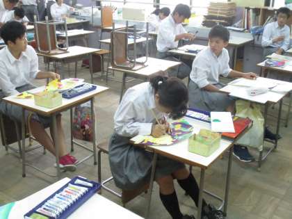 音楽く室の向かいの美術室では、3組が学習中です。