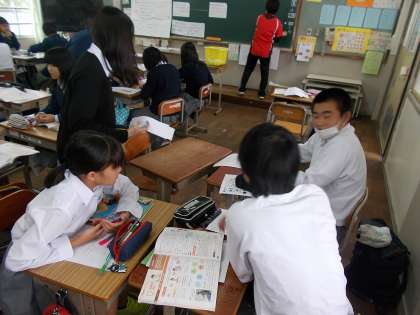 3−5は社会,3−2は保健の授業でした。対話的な学びをされていました。