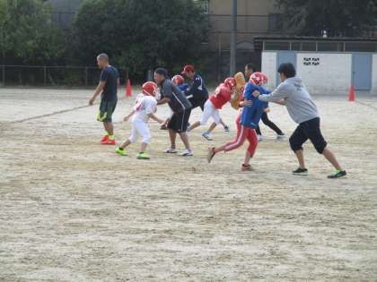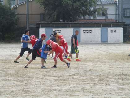 会場設営のため、タッチフットボール部の練習ができません。そこで、二条中学校のグランドを貸しました。