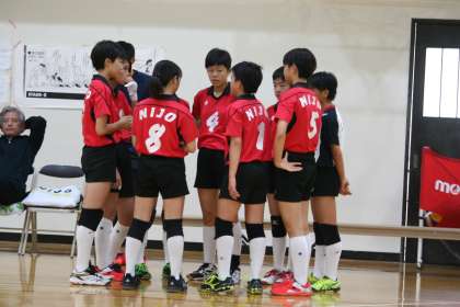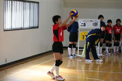 接戦の末、1セット目を奪われましたが、第2セットは二条中学校のリードで進みました。