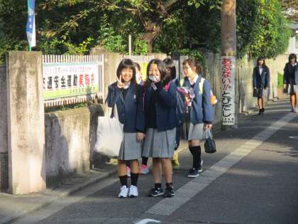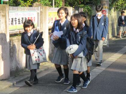 とても気持ちのよい朝です。登校する生徒もそれを感じているのか、表情が柔らかいです。