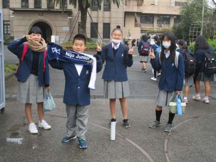 昨日配られたスポーツタオルを早速持ってきた生徒が居ました。