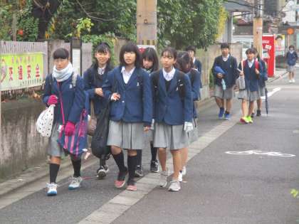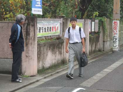 現在のところ、各学年に1人ずつそんな男子生徒が居ます。因みに、写真の生徒は2年生で、昨年度は冬中この姿を通しました。
