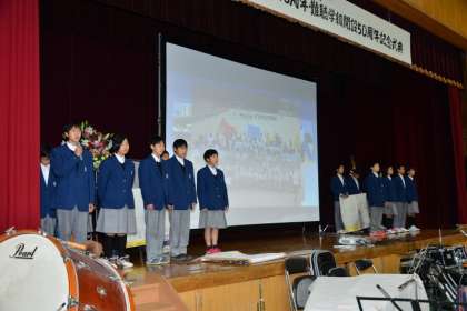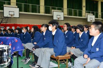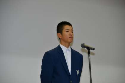 開会のあいさつに続いて、さっそく1年の発表です。