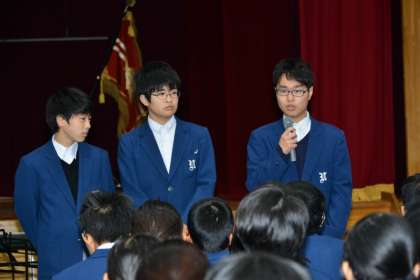 1年の発表を聴いて、2・3年生が感想や意見を述べます。