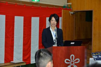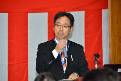 学校長の開会の言葉に続いて、研究推進委員長が研究概要を報告しました。